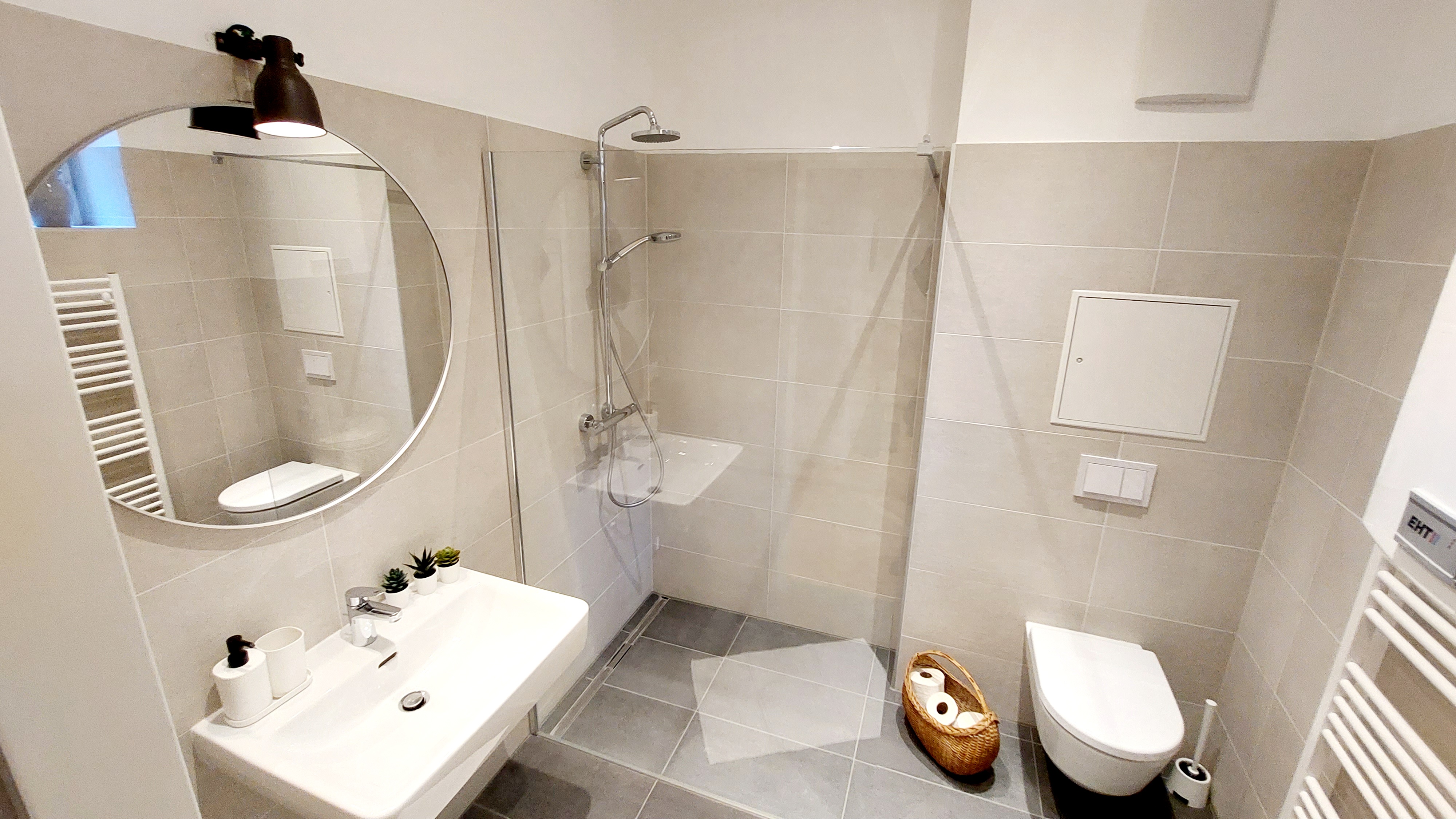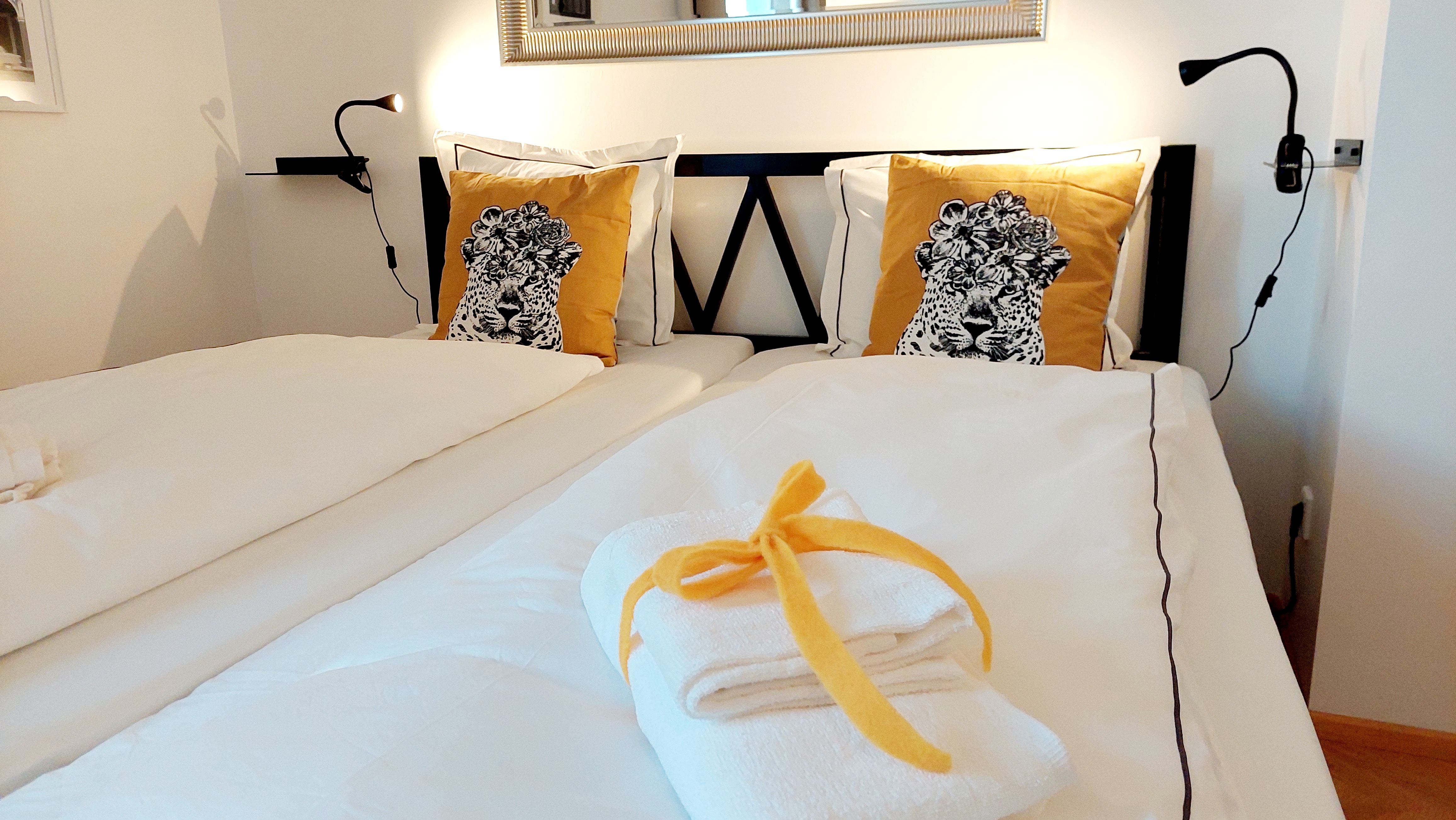 Die Wohnung verfügt über ein komfortables Doppelbett, eine praktische Kofferablage sowie eine gemütliche Leseecke, die zum Entspannen einlädt. Der großzügige Essbereich schafft eine angenehme Atmosphäre für gemeinsame Mahlzeiten, während die voll ausgestattete Küche alles bietet, was Sie zum Kochen benötigen. Das moderne Badezimmer überzeugt mit einer eleganten Walk-in-Dusche. Ein einladender Vorraum rundet das durchdachte Raumkonzept ab. Bettwäsche, Handtücher und Endreinigung werden zur Verfügung gestellt.